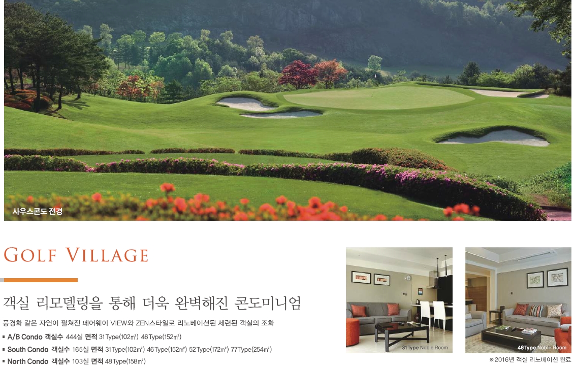 ☞ 오크밸리리조트는 골프빌리지와 스키빌리지가 있습니다.