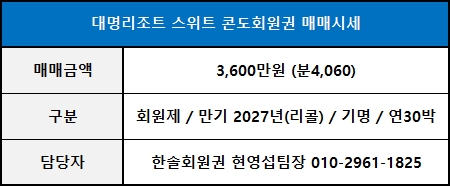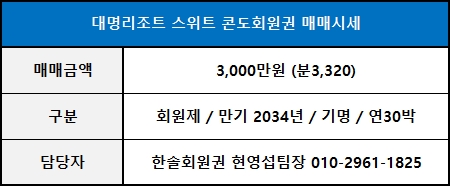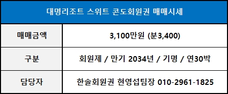 소노호텔앤리조트 대명리조트회원권 추천매물 매매시세 (2021.04.09.) 안내