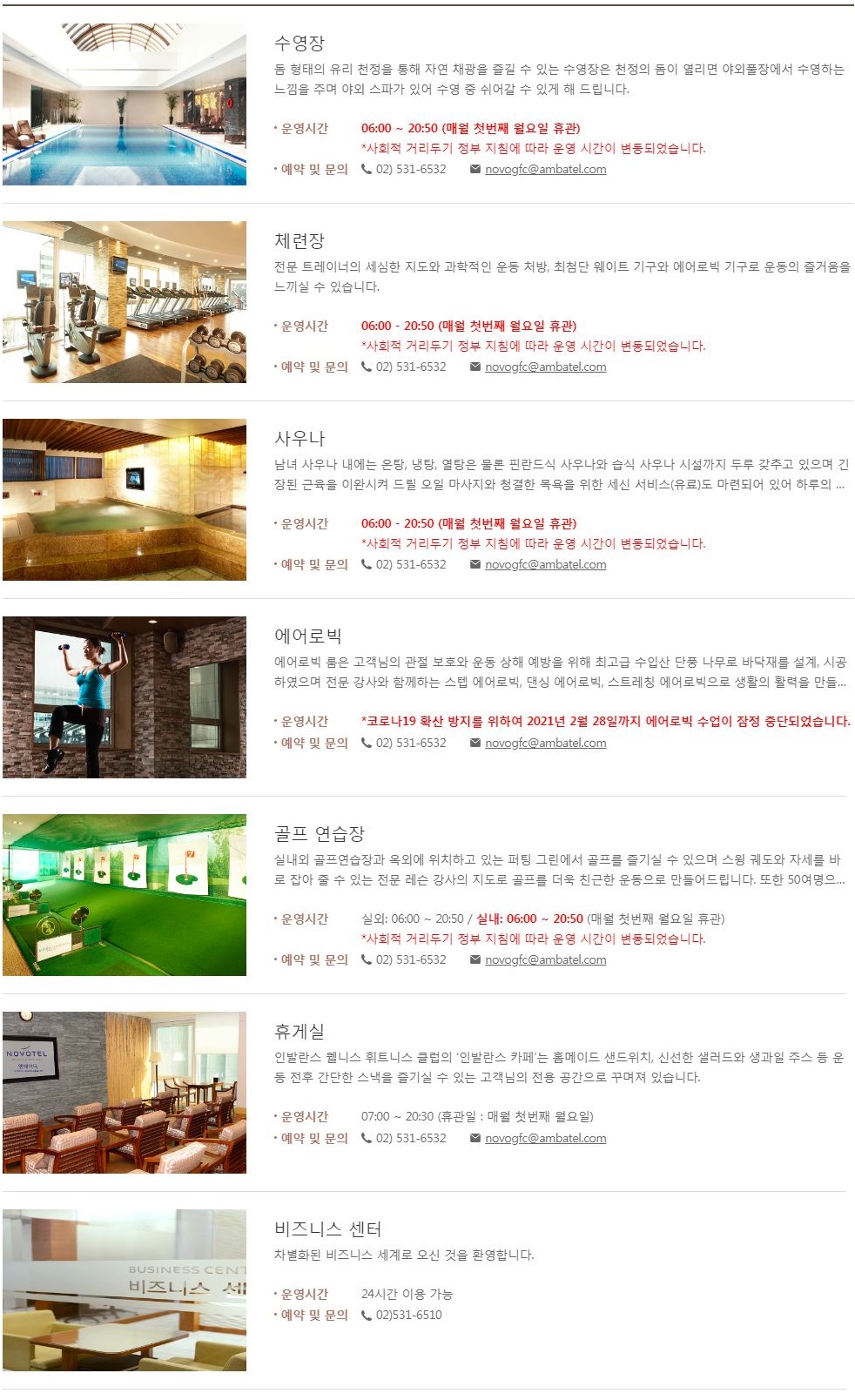 주요시설 : 실내 수영장, 체련장, 사우나, 에어로빅, 골프연습장 등