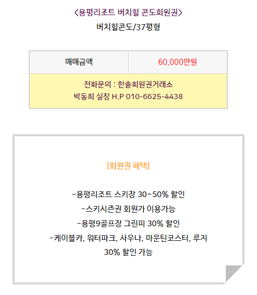 오늘은 용평리조트 버치힐 콘도회원권에 대해서 알아보도록