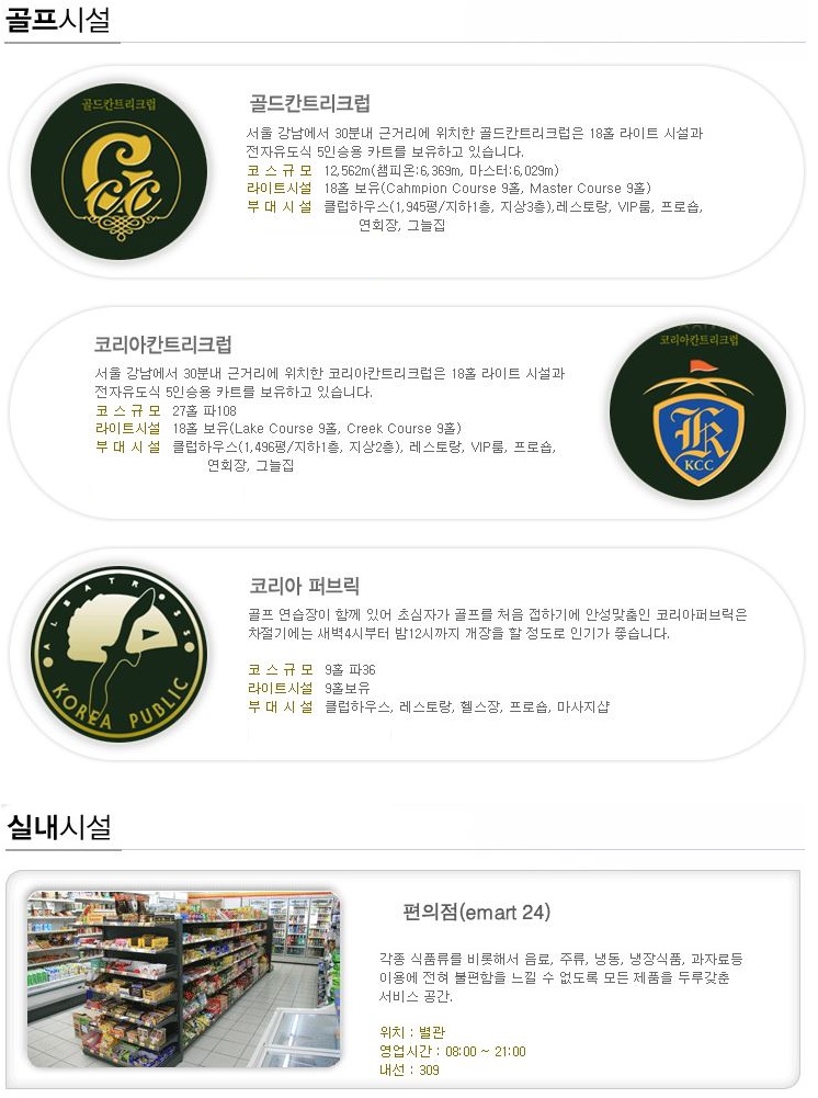 부대시설 : 골드CC, 코리아CC, 코리아 퍼블릭 등