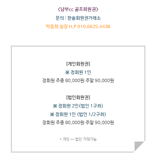 골프회원권남부 남부cc회원권 매매 안내드립니다. 한솔회원권거래소 작성함 2022. 4. 6. 09:27 페이스북에 공유 카카오스토리에 공유 네이버에 공유 트위터에 공유 구글플러스에 공유 + 안녕하세요. 한솔회원권거래소 입니다. 오늘은 남부cc회원권에 대해서 알아보도록 하겠습니다. 매매상담 - 한솔회원권거래소 010.6625.4438 남부cc회원권은 개인회원권과 법인회원권으로 구분되어 있습니다. 개인과 법인간의 거래가 가능하며 더욱 궁금하신 부분이 있다면 한솔회원권으로 문의하여 주시기 바랍니다. ▼▼▼ 남부cc 이용요금 및 예약안내 남부cc 오시는 길 골프/콘도/휘트니스 회원권 한솔회원권거래소 빠른상담을 원하신다면 아래의 이미지를 클릭하여 주시기 바랍니다. ▼▼▼ 좋아요공감공유하기 URL 복사카카오톡 공유페이스북 공유엑스 공유 게시글 관리 구독하기한솔회원권거래소 저작자표시 (새창열림) '골프회원권/남부' 다른 게시물 보기 더보기 2022.08.05 남부cc회원권 매매 안내드립니다. 2022.03.30 남부cc회원권 매매 안내드립니다. 2022.01.12 남부cc회원권 매매 안내드립니다. 2021.12.23 남부cc회원권 매매 안내드립니다.