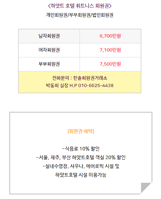 하얏트호텔휘트니스 회원권은 개인회원권과