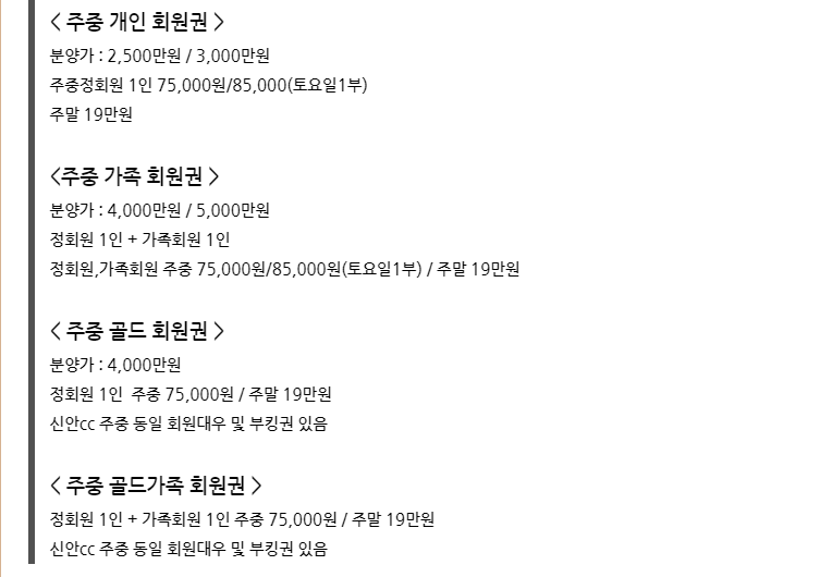그린힐cc 골프장회원권 혜택 안내