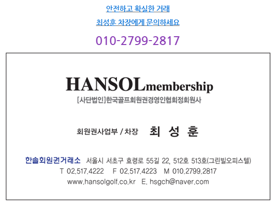 한솔회원권 최성훈 차장입니다.